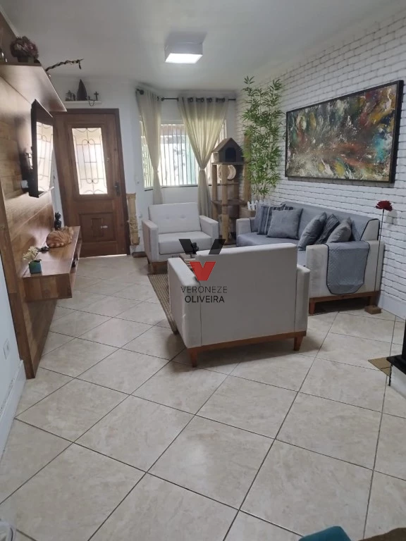 Sobrado com 03 dormitórios, sendo 01 suíte, sala ampla com 02 ambientes, cozinha com planejados, área de serviço, quintal e 02 vagas de garagem.